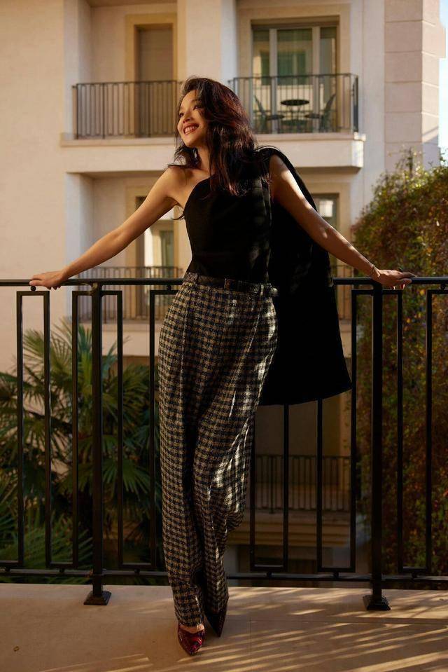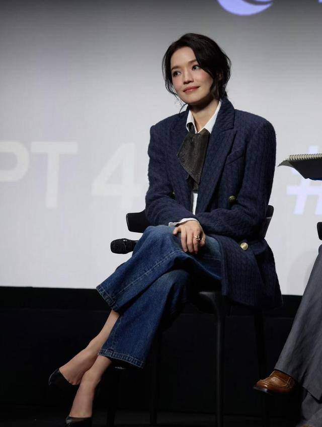 出席重要场合的时候,舒淇会打扮得更得体一些,挺阔有型的千鸟格西装外套,搭配牛仔裤,瞬间摆脱了严肃感。