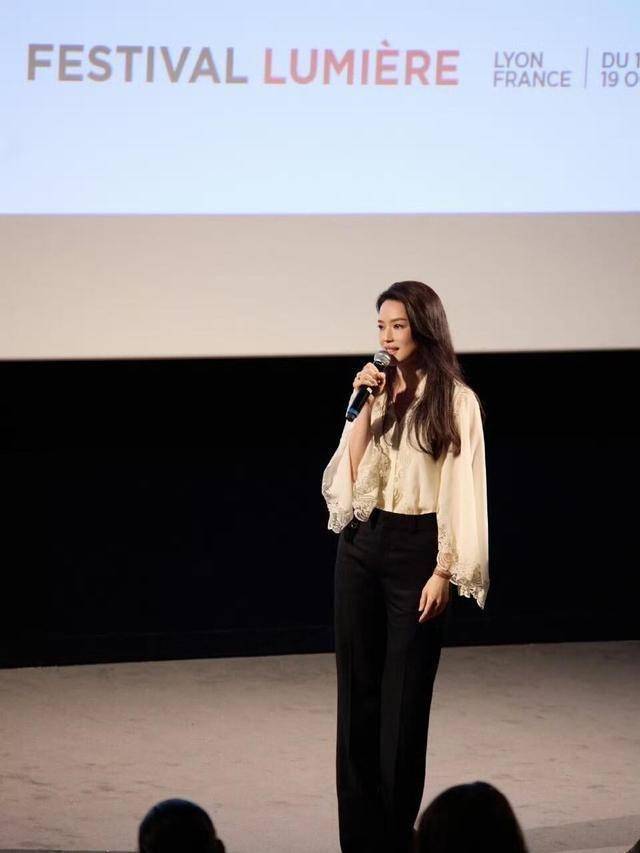 舒淇简直就是妥妥的“百变女王”,可甜美、可性感还可以变身高智大女人,雪纺衬衫配西装直筒裤,落落大方。