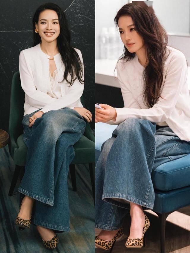 白衬衫和牛仔裤的搭配,不挑剔场合,尤其是廓形衬衫,穿在身上特别时髦,裤腿宽一点,造型更洋气。